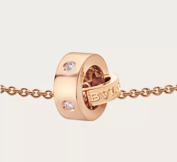 Grown from the Roman roots of the brand and created as an elegant fusion of culture and modernity. the Bvl Bvl necklace is an effervescent. contemporary statement of classiness. The trademark double logo was initially inspired by the curved inscriptions on ancient coins. whilst today it has evolved into playful and unexpected interpretations. offering a distinctive element to the design. Bvl Bvl 18 kt rose gold pendant necklace with five diamonds.